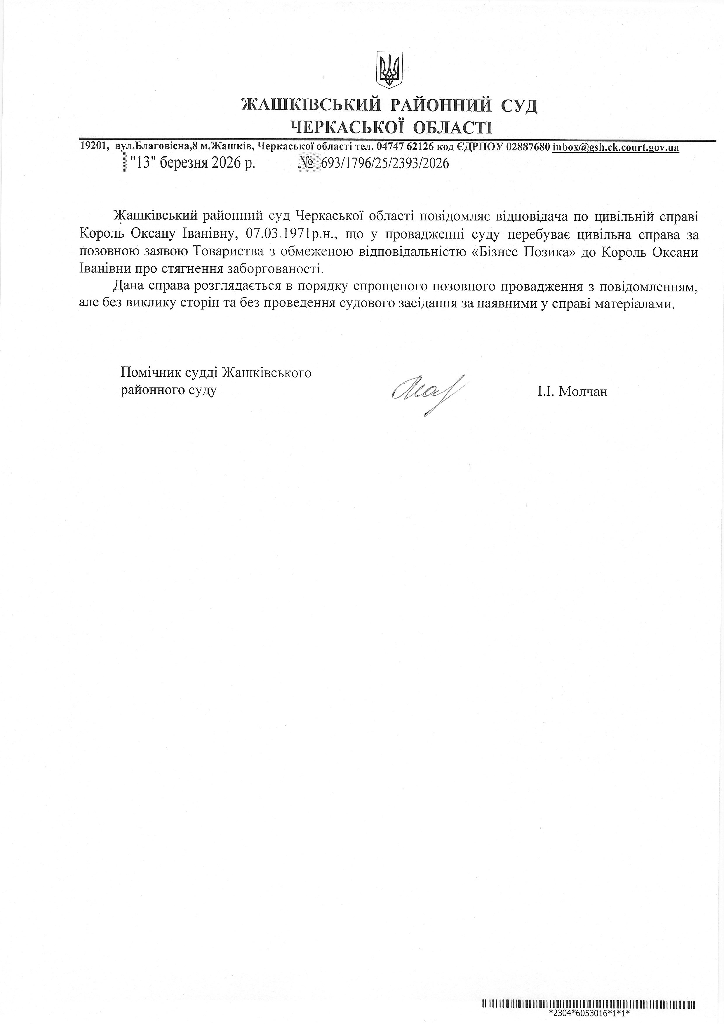 Жашківський районний суд Черкаської області